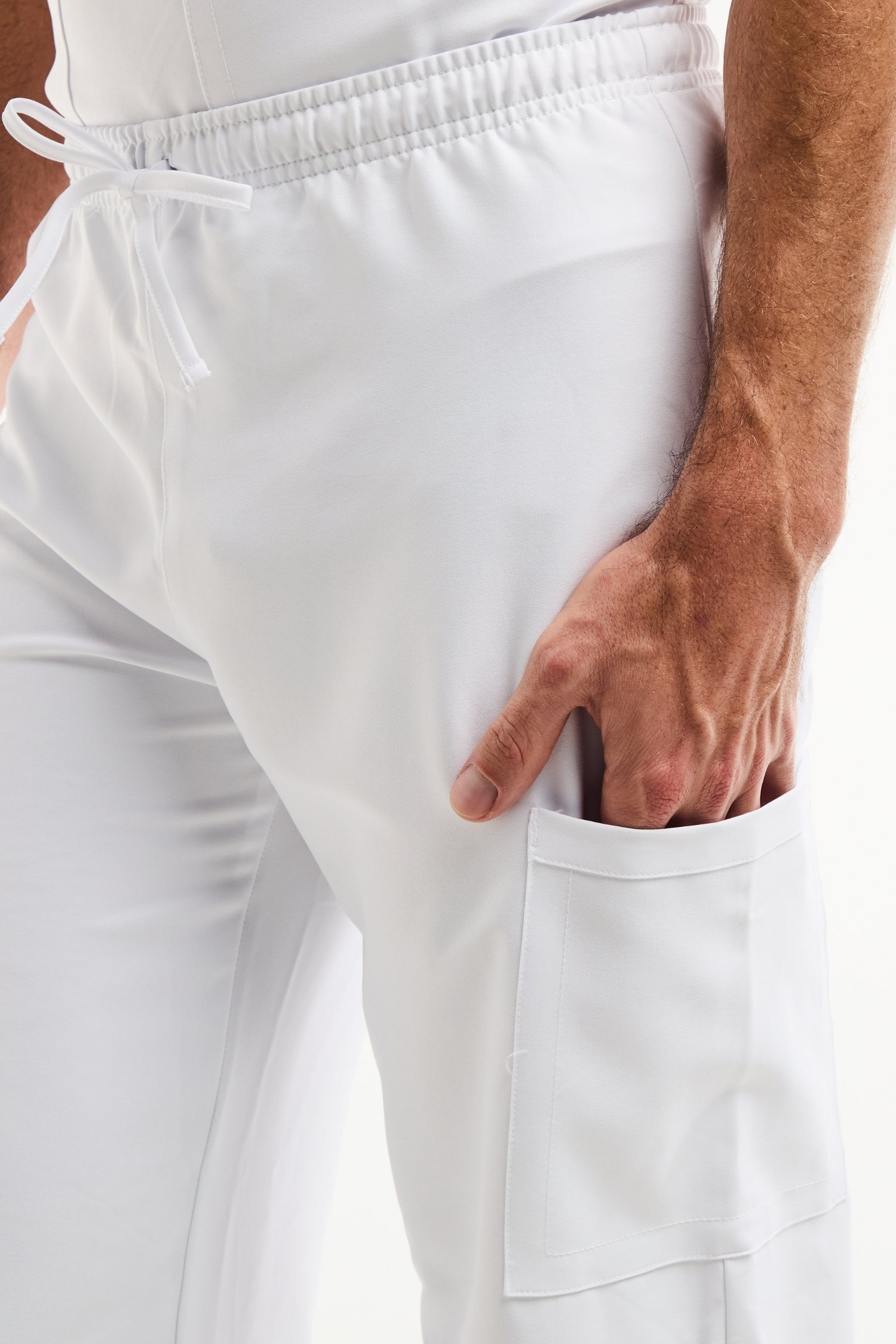 Ce pantalon médical homme ProTech combine confort, praticité et hygiène renforcée. Sa coupe droite classique, sa taille mi-haute élastiquée et son cordon de serrage assurent un maintien fiable et agréable pour un usage intensif. Grâce au tissu technique ProTech (anti-microbien & anti-odeur), il reste frais et performant tout au long de la journée, même en conditions de travail exigeantes.